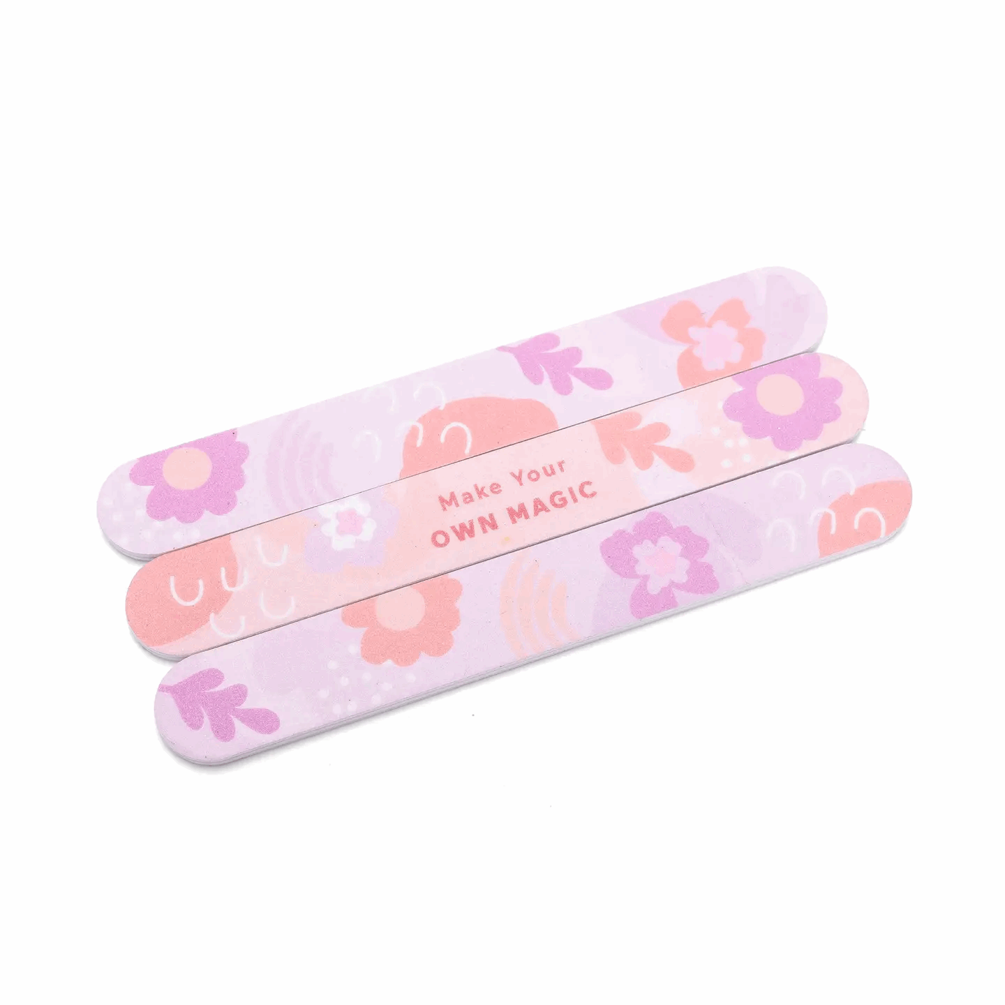 Set of 3 emery boards with cushioned foam core, protected in a clear sleeve. Compact and perfect for shaping nails on-the-go.