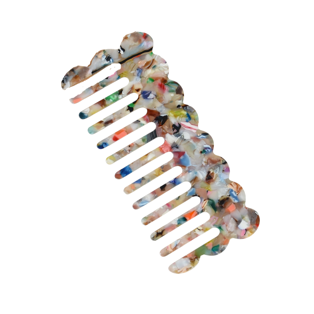 Made from high-quality acetate obtained from eucalyptus, low-carbon environmental protection, naturally biodegradable. The wide teeth are curved and soft on the end. Great for straight and curly hair.