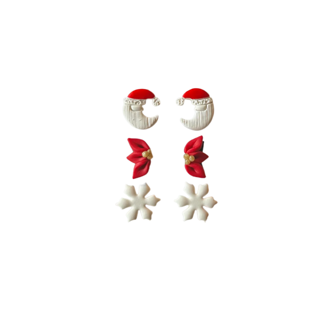 Christmas Stud Pack - Santa / Poinsettia / Snowflake
